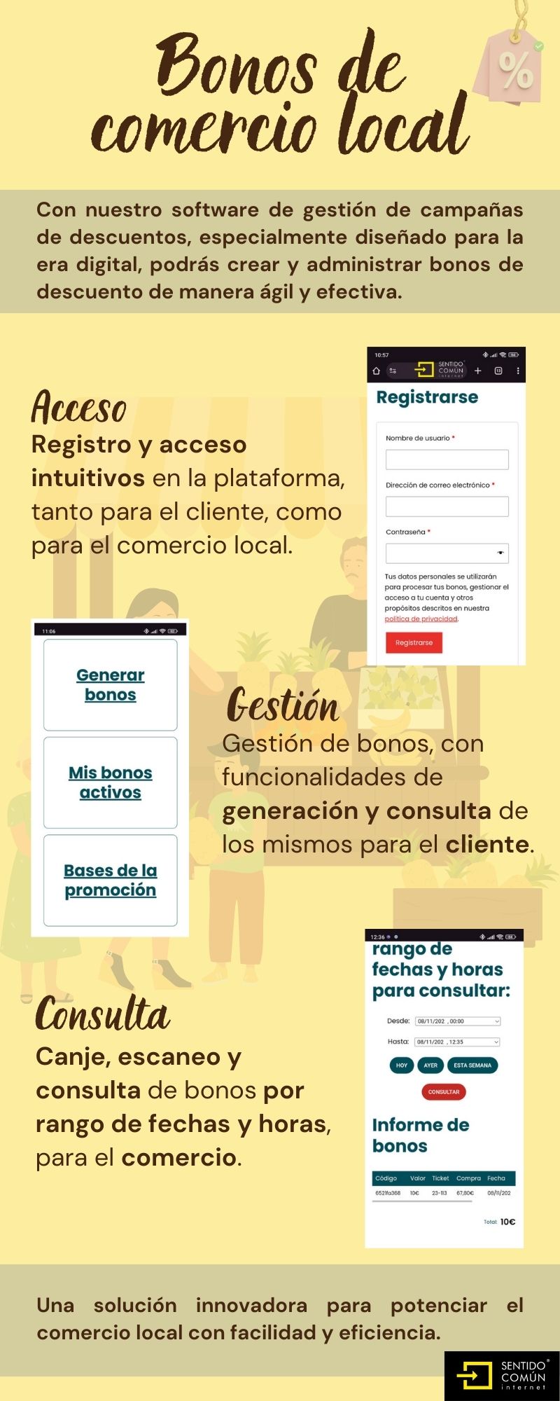 Una solución innovadora para potenciar el comercio local con facilidad y eficiencia. Con nuestro software de gestión de campañas de descuentos, especialmente diseñado para la era digital, podrás crear y administrar bonos de descuento de manera ágil y efectiva.