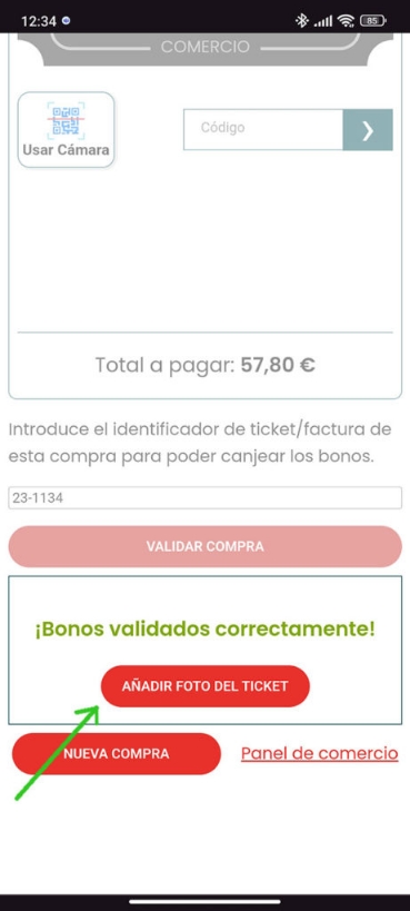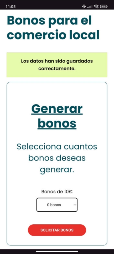 - Registro de forma sencilla y obtención de bonos de descuento digitales, con los que beneficiarse en la próxima compra en el comercio local.